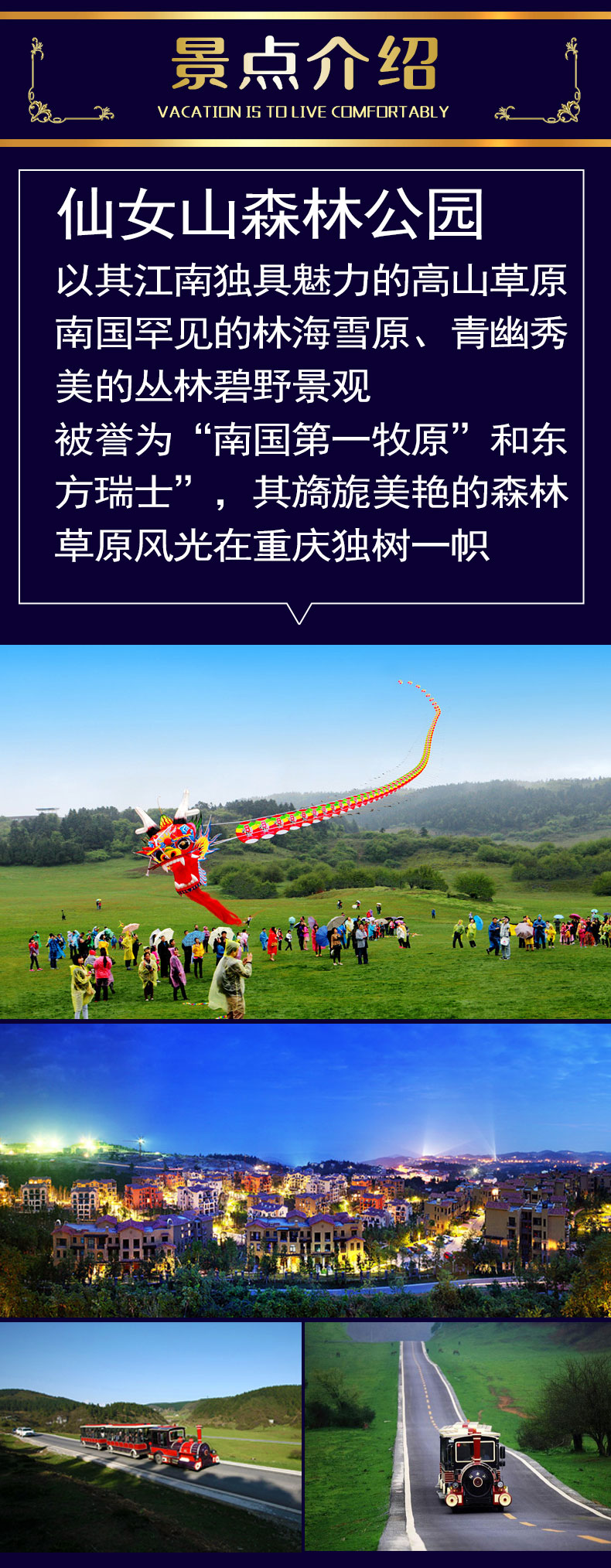 后乘車前往 【仙女山國家森林公園】 (游覽約 2 小時左右),平均海拔 1900 米,高峰 2033 米,擁有森林 33 萬畝,天然草原 10 萬畝,以其江南獨具魅力的高山草原,被譽為“南國第一牧場”;可以在草原里漫步,享受陽光的溫暖普照。